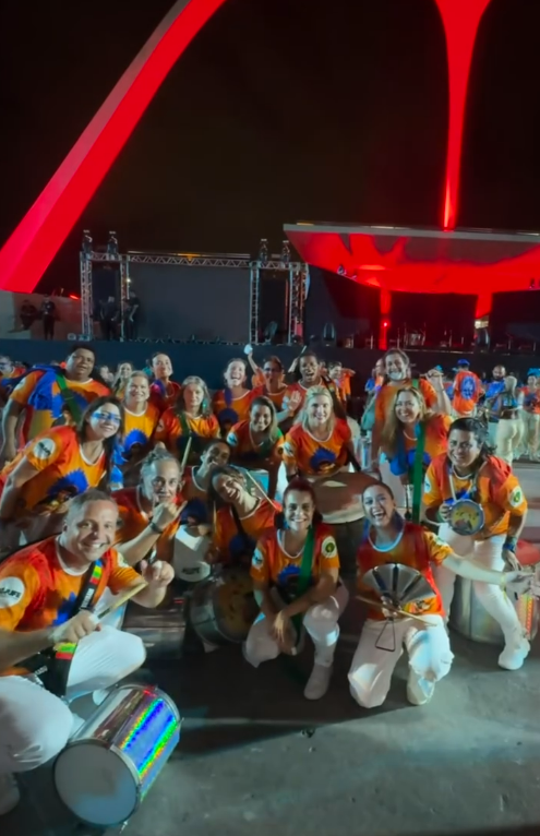 Os alunos da oficina de percussão participaram de uma experiência cultural única ao se deslocarem até o Rio de Janeiro para desfilar na Marquês de Sapucaí. A atividade fez parte de uma parceria consolidada com a Fina Batucada, que vem sendo realizada com sucesso nos últimos anos, fortalecendo o intercâmbio cultural e artístico entre os participantes.